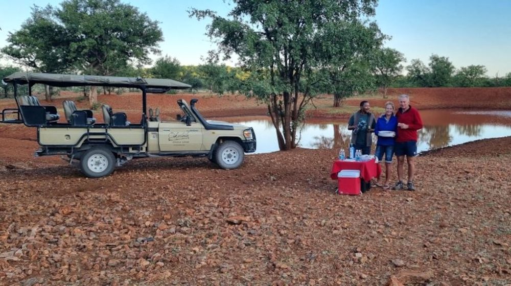 Okutala Game Drives : All trips are done on open 10-seater open Game viewing vehicle on the farm only. Poncho/blanket kits are provided to all guests. Sundowner Guides will take guests to a special sundowner spot and spoil them with some snacks and drinks.